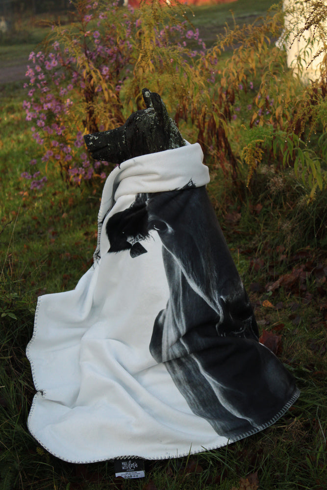 Die Kuscheldecke aus Plüsch ist warm und weich. " Eine Kuh hat Ruh" heisst das Bild. Die Rückseite ist ein schönes grau, sodass es auch mal schlicht geht. Pflegeleicht und hypoallergenic -einfach in der Waschmaschine mit 30 Grad waschbar.