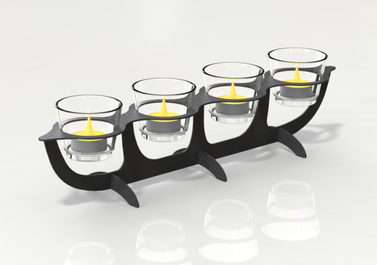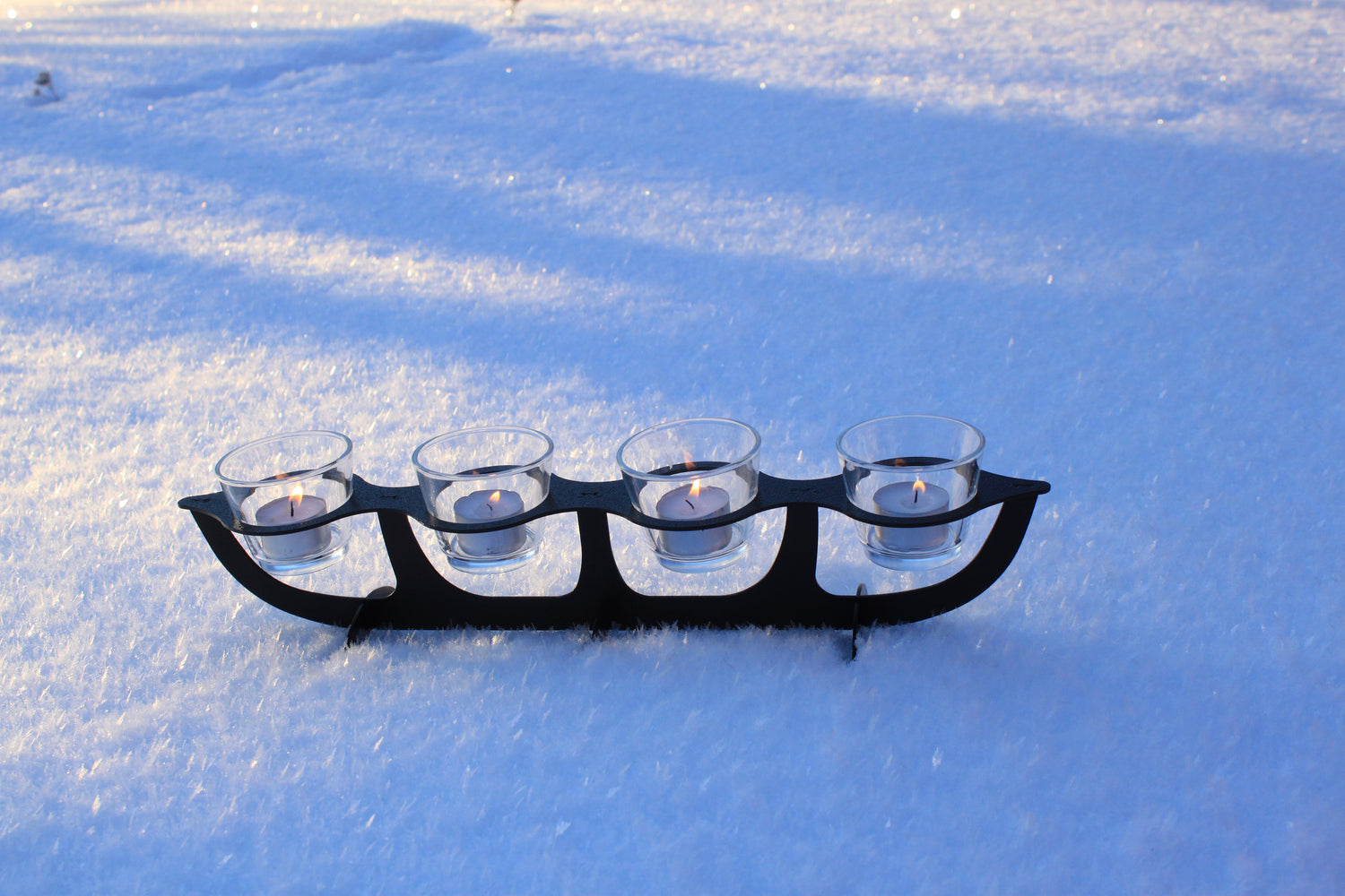 - 4 tuikkupaikkaa. Tuikkukupit kirkasta lasia. Runko metallia.